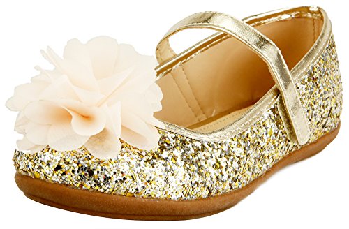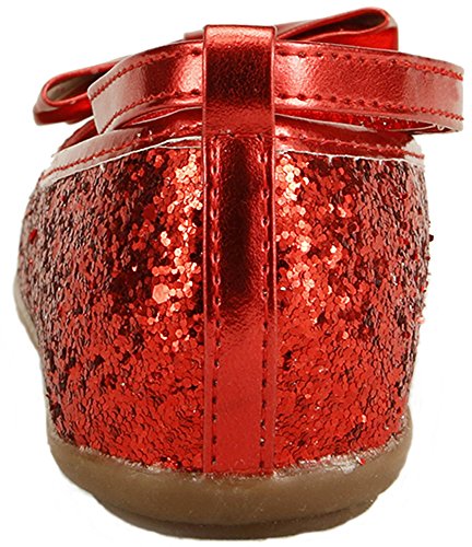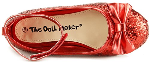 -. Feature : The Doll Maker Metallic Glitter Strap Flat Shoes / Glitter PU upper / Handmade Metallic Bow topper / Ankle-wrap Velcro Closure / Imported