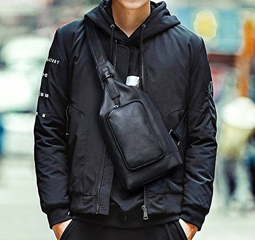 -. Title : MUZOR Men's Genuine Leather Shoulder Sling Unbalance Backpack Chest Fanny Pack Black