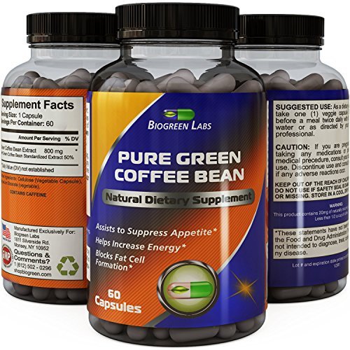 Studio : Biogreen Labs Publisher : Biogreen Labs Binding : Health and Beauty Product Description Our 100% Pure Green Coffee Bean uses the most potent and pure coffee bean extract on the market, with technology's latest state-of-the-art extraction method. By combining the power of science for pure extraction and the purity of the Green Coffee Bean's natural potency, Biogreen Labs Coffee Bean supplement stands to be of the highest quality on the market.;Premium quality and highest grade ingredients for real results every month.;Made in the USA in a GMP certified facility.;Best formula for on-going weight loss and fat burning. 100 percent money-back guarantee.;Tested for PURITY POTENCY each and every time 0