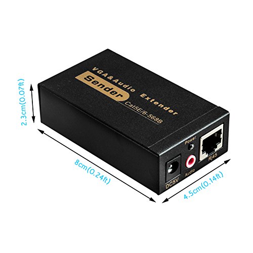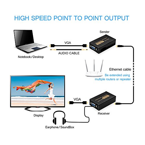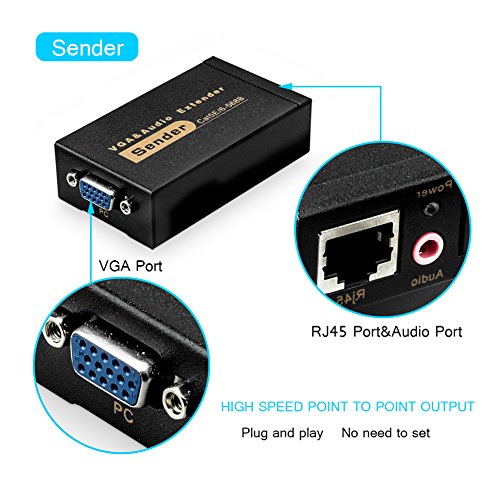 ★HIGH SPEED POINT TO POINT OUTPUT — By a cat5e/6 cable, it extend VGA image and audio signals simultaneously up to 100m/328ft.