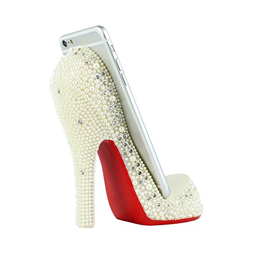Simulated Pearl Crystal Shoe Cell Phone Holder Large, White