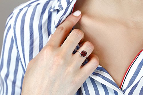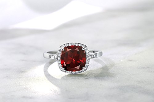 -. Title : 2.74 Ct Cushion Red Garnet 10K White Gold Ring with Accent Diamonds (Available in size 5, 6, 7, 8, 9)