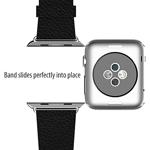 Apple Watch Band, JETech 42mm Leather Strap Wrist Bands Replacement w/ Metal Clasp for Apple Watch All Models 42mm (Black) - 2103