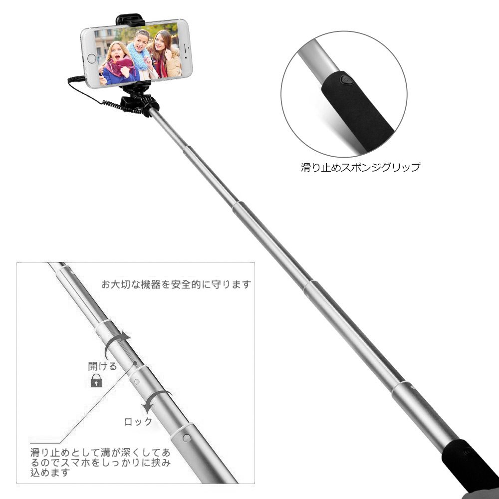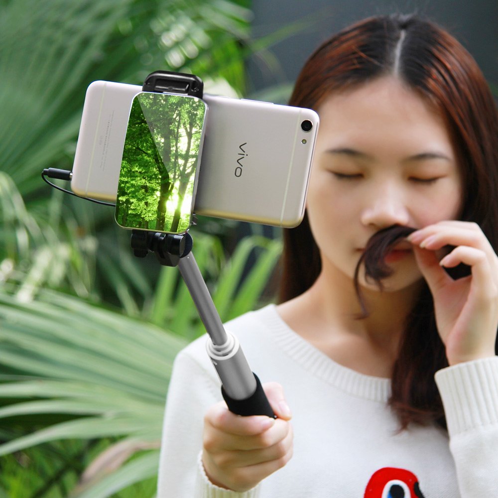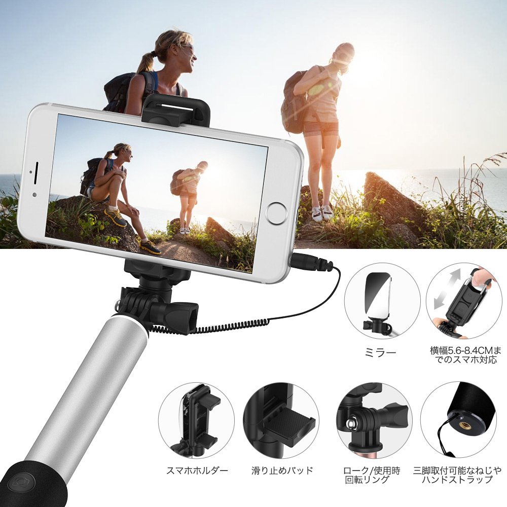 Wired self-shooting stick Wired shutter buttoned mirror with built-in iPhone / Android tick serka bar