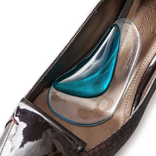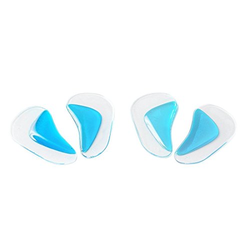 -. Feature : UNPARALLELED ARCH SUPPORT - Our arch support flat foot insoles provide unparalleled support to your feet arches and help you get relief from pain while making it easy for you to walk around. These orthotic inserts help distribute and minimize pressure in the foot by providing the additional arch support and by improving their ability to absorb impacts and shocks without excessive stresses. The insoles come in a pair of 2, i.e., 4 pieces. / COMFORTING MASSAGING ACTION - The soft PU gel arch support insole provides an effective massage to your foot throughout the day. This helps improve your blood circulation and recover faster from any fatigue, injury or stresses. The insoles also make it possible to wear even those shoes which are uncomfortable but look stylish and elegant - simply slip these arch supporting insoles in the shoes and you are good to go. / EASY TO USE - The foot massage arch supporting flat foot insole could be easily sticked inside any shoes with the help of self adhesive base. More importantly, it could also be taken out easily without damaging your shoes, thus making it extremely easy to use. The insoles could also be washed every 6 months to maintain high level of Hygiene. / IDEAL FOR EVERYDAY USE - The main insole is transparent while the arch support cushion is blue in color making it almost invisible in any footwear. The insole is ideal for everyday casual or professional wear, sports or athletic activities. The superior quality insole discourages growth of any odor causing bacteria and helps keep your feet dry and comfortable, even when worn for long durations. / 100% RISK-FREE SATISFACTION GUARANTEE - We also offer you 100% risk-free satisfaction guarantee to let you buy with confidence; no questions asked. However, we are quite sure that these insoles will prove to be a corrective flat feet or splay feet measure and you will love these for their ability to reduce pain, evenly distribute pressure and help in faster recovery from fatigue.