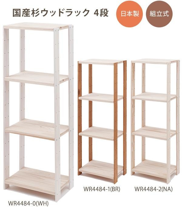 ちょっとした小物や本を飾るのに丁度よい大きさのウッドラックです。天然の木ならではの風合いがお部屋の雰囲気をやさしくしてくれます。 製造国:日本 素材・材質:国産杉(ラッカー塗装) 仕様:組立式 付属品:取扱説明書 ※サプライヤー直送品  ご注文後3~4営業日後の出荷となります【商品名】国産杉ウッドラック 4段 WR4484-0(WH)