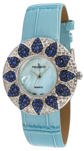 -. Title : Peugeot Women's J1450BL Blue Swarovski Crystal Round Case Blue Strap Watch