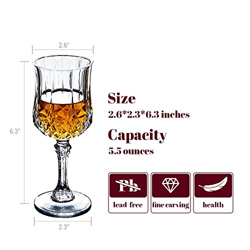 (Bella Vino)/Kitchen Dining/Bar Tools Glasses/DIRECT FROM USA/Crystal Wine Glasses Set of 4 by Dr. Hetzner - 5.5 Ounce - Old Fashioned Designed Carved Wine G...