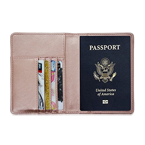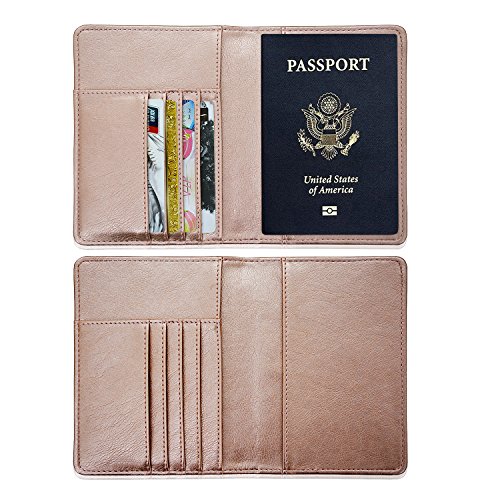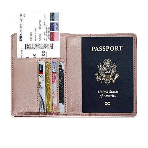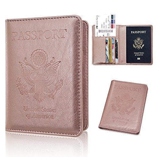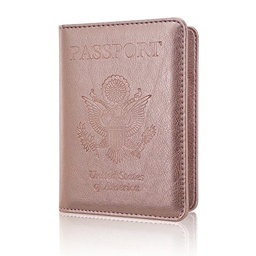 Passport Holder Case, ACdream Protective Premium PU Leather RFID Blocking Wallet Case for Passport, Rose-Gold