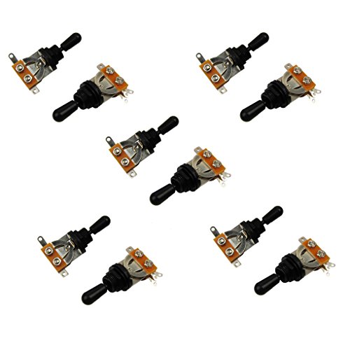 Product Description1.100% new 2.high quality and testing is fine 3.no noise, 3 way switch for your lp style or similar guitar 4.Color: Chrome, black with black tip Package Included: 10pcs Switches0