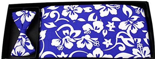 -. Feature : This Blue Pareaus Floral Bow Tie and Cummerbund Set is a great addition to any tuxedo! / This Novelty Bow Tie and Cummerbund Set is perfect for special occasions and themed parties! / This Bow Tie and Cummerbund Set is a great way to embrace a theme without sacrificing a formal look! / This set is perfect for cruises, destination weddings, island vacations, etc. / Made from cotton.
