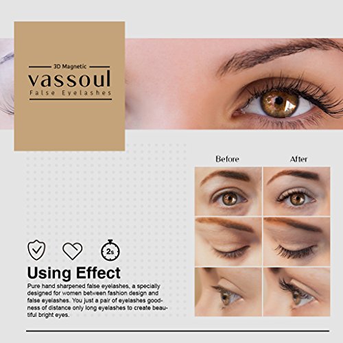 Vassoul Magnetic False Eyelashes - 0.2mm Ultra Thin, 3D Fiber Reusable Best Fake Lashes, Natural Handmade Extension Fake Eye Lashes, No Glue (4pcs)