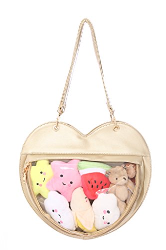 -. Title : Women Fashion PU Leather Handbag Shoulder Bag Transparent Backpacks Love Heart Shape Messenger Bag