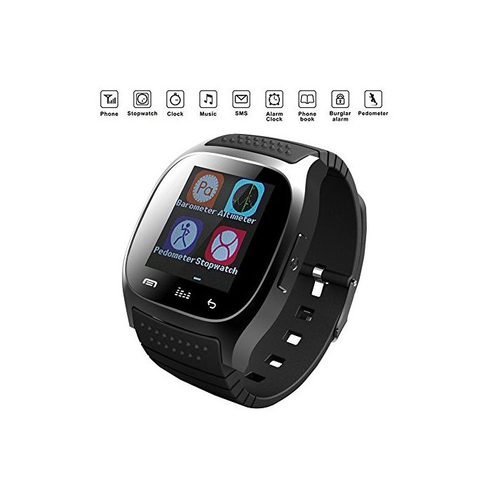 스톱워치나 자명종 등의 시계 기능은 물론,블루 tooth에 스마트 폰으로 페어 링 하는 것(일)에 의해착신 통지나 통화,전화번호부,페이스 북 등의 SMS통지,음악 재생 등 여러가지 기능이 쓸만한 다기능 스마트 워치입니다.iPhone에는 대응 하고 있지 않으므로,느낌을 붙여 하십시오.