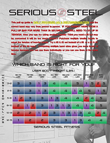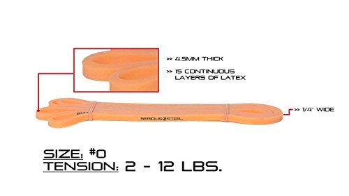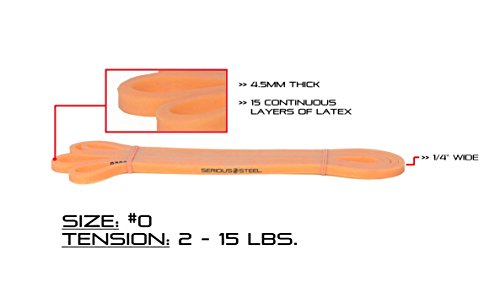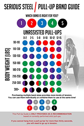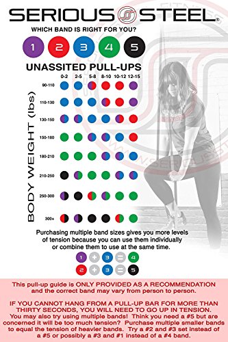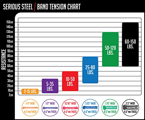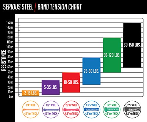 Six-Band Set Four-Band Set #5 Black - 60 to 150 lbs. (Single) #4 Green - 50 to 120 lbs. (Single) #3 Blue - 25 to 80 lbs. (Single) #2 Red - 10 to 50 lbs. (Single) #1 Purple - 5 to 35 lbs. (Single) #0 Orange - 2 to 15 lbs. (Single) |