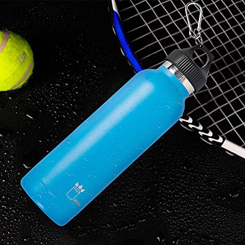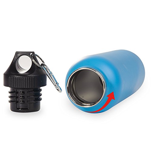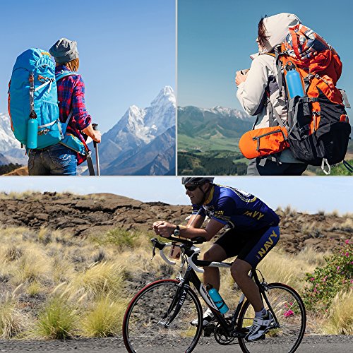 The portable water bottle comes with a BPA free cap. The lid prevent any accident spills. The integrated loop with carabiner clip on cap allow the sports bottle easy to grab and take. You can take it with a finger or hanger it to your bag with the clip. It is perfect for outdoor sports, climbing, cycling, running etc