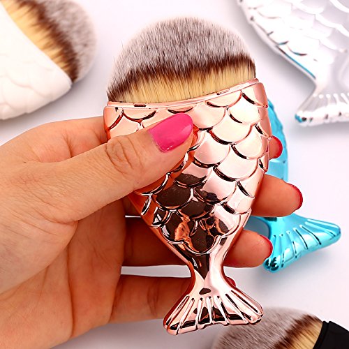 Mermaid Fish Makeup Brush, Powder brush,WINNING Face Brush Fishtail Bottom Brush Powder Blush Foundation Cosmetic Brushes Tool 1pcs … (Golden)