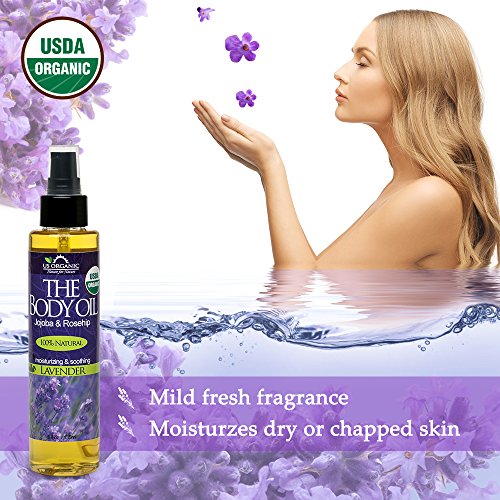 US Organic Body Oil - Elegant Lavender - Jojoba and Rosehip Oil with Vitamin E, USDA Certified Organic, No Alcohol, Paraben, Artificial Detergents, Color or...