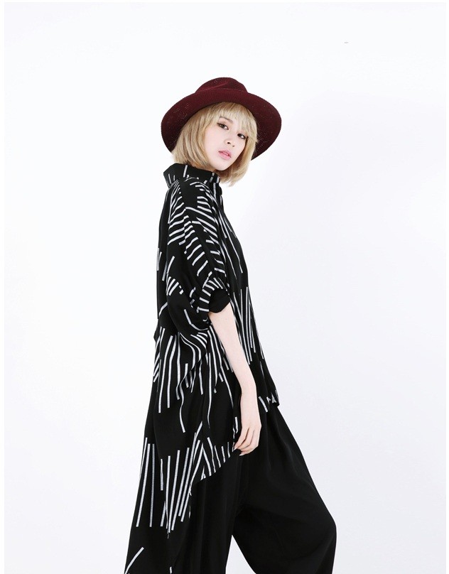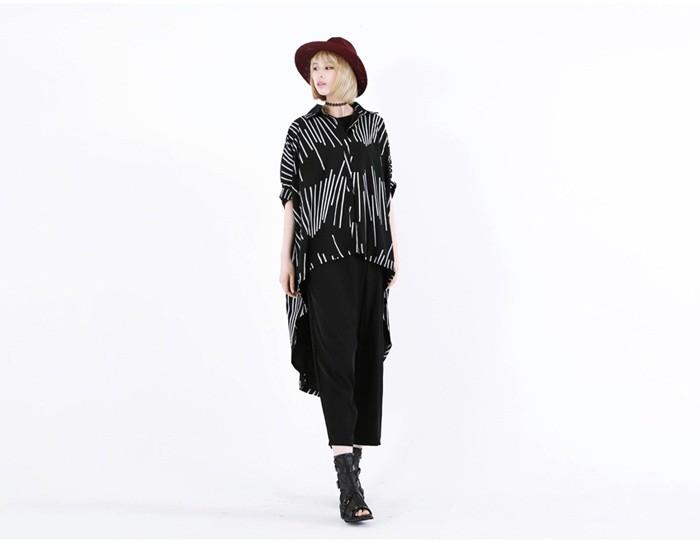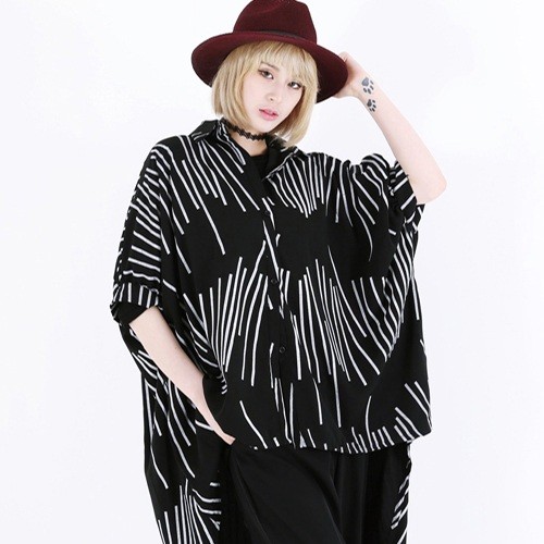 商品名:シャツ レディース ブラウス ゆったり 個性的 柄 半袖 春 2018 モード系 個性的 40代 ファッション