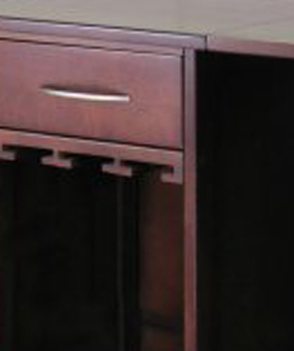 -. Feature : Expandable wine bar with foldout leaves transforms compact storage into full-service entertainment station / Crafted of solid/composite wood with dark walnut finish / Design includes stemware holder, accessories drawer, open shelf, and 9-bottle wine rack / Assembly required; tools and hardware included / Measures 50-inch long by 17.87-inch deep by 40-inch high