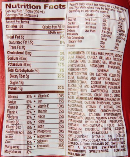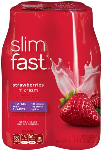 -. Binding : Health and Beauty -. Brand : Slim-Fast -. Feature : Pack of twenty four, 10 fluid ounce (Total of 240 fluid ounce) / 180 to 190 calories for each ready-to-drink shake / Up to 4 hours of hunger control with 10 grams of protein and 5 grams of fiber per bottle / One-Third of your recommended intake for most essential vitamins and minerals / For use as part of the Slim-Fast 3-2-1 Plan (TM) -. IsAdultProduct : 0 -. Label : Slim-Fast -. Manufacturer : Slim-Fast -. NumberOfItems : 1 -. PackageQuantity : 24 -. ProductGroup : Health and Beauty -. ProductTypeName : HEALTH_PERSONAL_CARE -. Publisher : Slim-Fast -. ReleaseDate : 2015-04-30 -. Studio : Slim-Fast -. Title : SlimFast Strawberries and Cream Ready To Drink Shakes, 10 Ounce (Pack of 24)