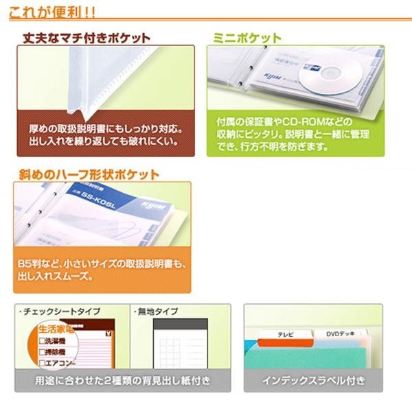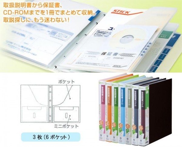 取扱説明書や保証書・CD-ROMなどを一緒に保管できるファイルです。