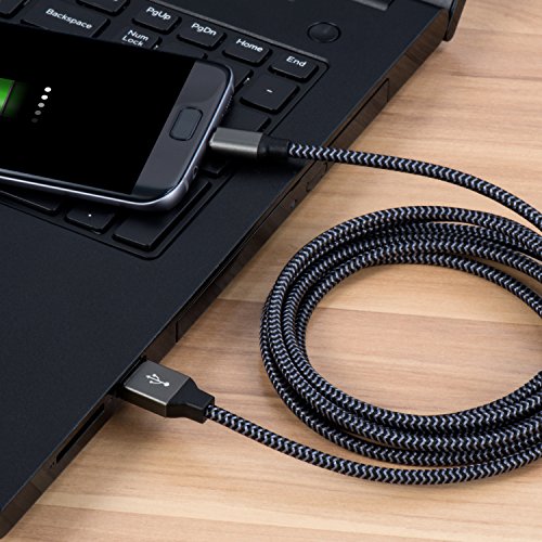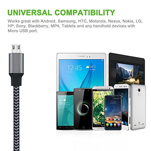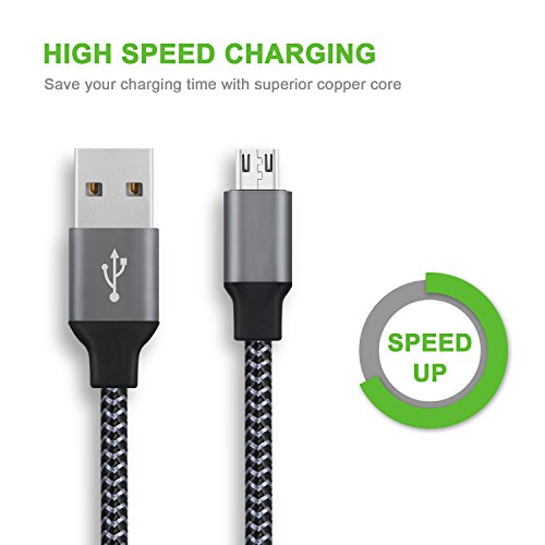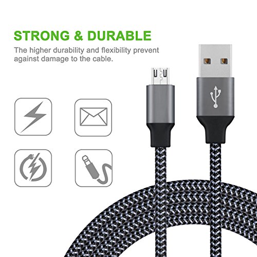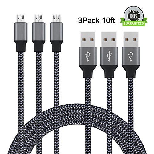 Micro USB Cable, Amoner 10FT USB to Micro USB Android Charger Cable Nylon Braided, Fast Charging Cord for Android/Samsung/Windows/MP3/Camera/PS4 and More(3 Pack, Carbon Black )