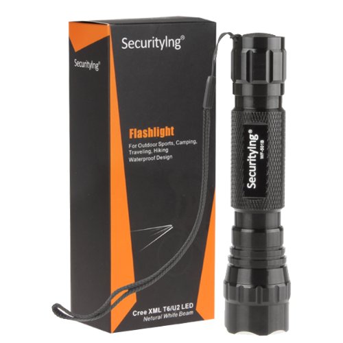 SecurityIng Waterproof 600 Lumens 5 Modes LED Flashlight Handheld Lighting Torch for Camping Hiking etc(18650 Battery Not Included)