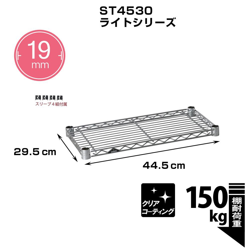 Luminous pole diameter 19mm parts for shelf plate steel shelf (load capacity 150kg) 1 sheet wire width direction (with sleeve) width 44.5 × depth 29.5cm ST4530