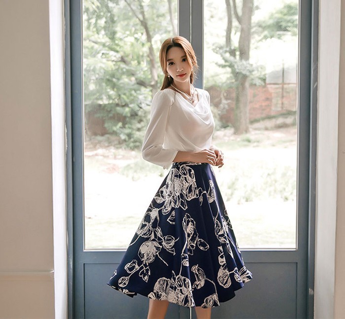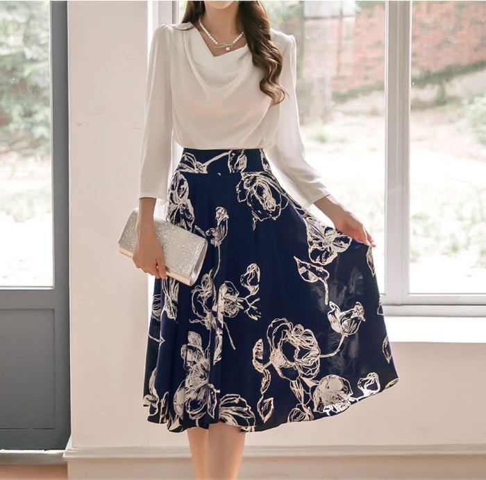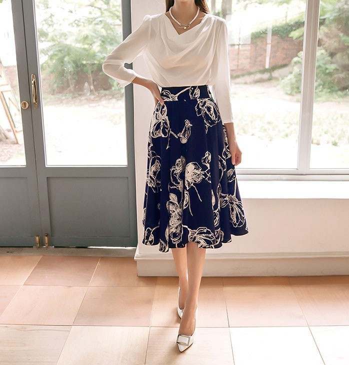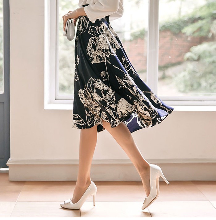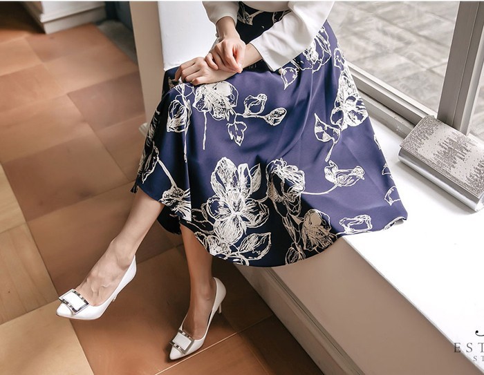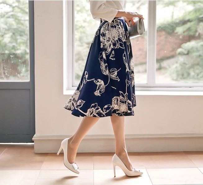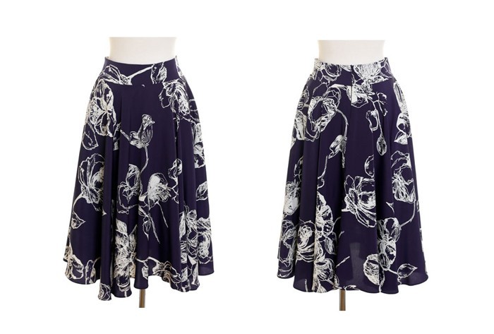商品名:スカート 膝丈 花柄 フラワー ハイウエスト