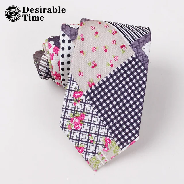 | [해외]6 센치메터 남성 꽃 목 넥타이 2017 새로운 디자이너 패치 워크 슬림 코튼 넥타이 DT456 |