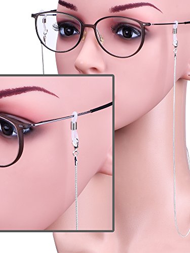 -. Feature : Austere and simple eyewear lanyard: sunglass neck straps with simple style looks comforting, they can match to different style clothing / Sturdy and durable: eyewear retainer material is copper; Oxidation-proof and dust-proof, they are not easy to snap which have a longevity / Detachable and replaceable: both sides have elastic silicone rubber tip which can firmly attach to the sunglass; Silicone ends with metal clasp are easy to install and remove / Color and size:sunglass cord color is silver; Glasses strap total length is approx 31.6 inch (80.5 cm); Width: about 1.5 mm; Clear elastic rubber tip length is 2 cm / Comfortable to use: sunglasses strap is slim, so it doesn't bother you when it's hanging on the neck; Not only for glasses, but also act as a decoration
