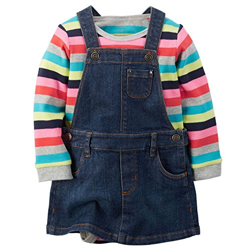 -. Title : Carter's Girl L/S Striped Bodysuit and Denim Jumper Set; Multi, 12 Months