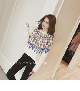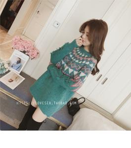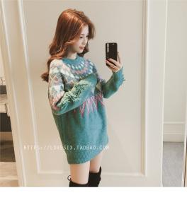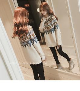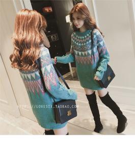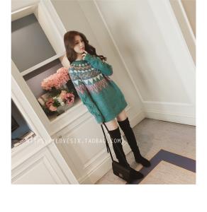 ニットトップス ニットプルオーバー 柄ニット ミニワンピース セーター ノルディック柄 秋冬 厚手 レトロ