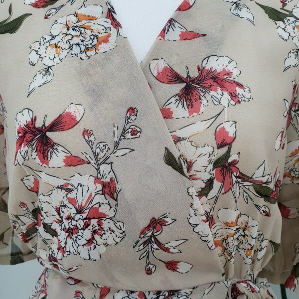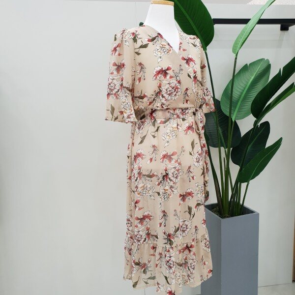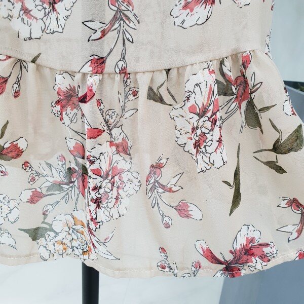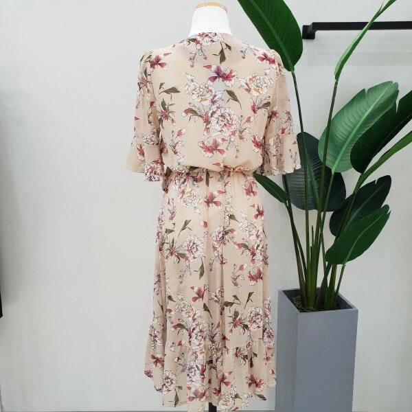 반팔 플라워패턴 원피스입니다~ 허리선 리본이 여성스러워 보이고 안감이 들어있어서 따로 이너 안입어도 됩니다~ 목선이 신경쓰이시면 탑과 함께 코디해주세요~