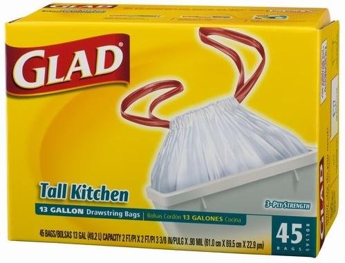 -. Title : Glad Tall Kitchen Bags, Drawstring, 13 Gallon