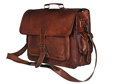 HLC HALLSTATT Leather Satchel Briefcase, 16" Laptop Messenger Shoulder Bag Tote for Men