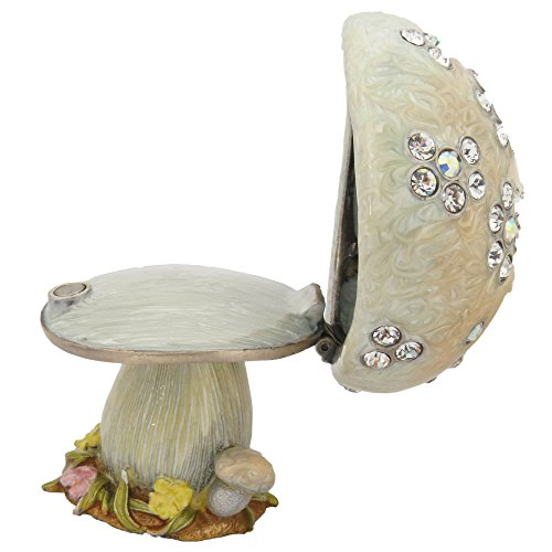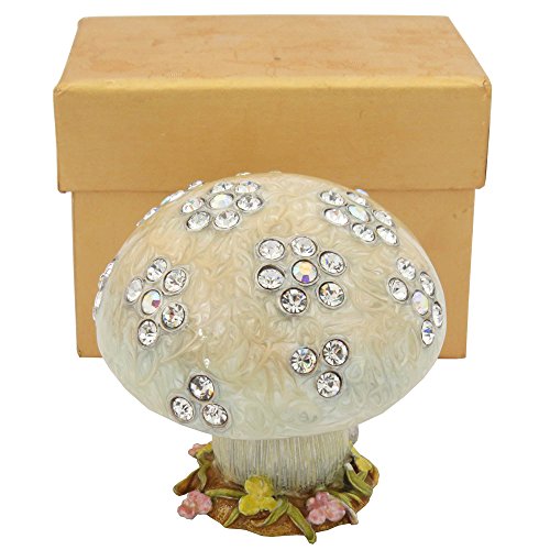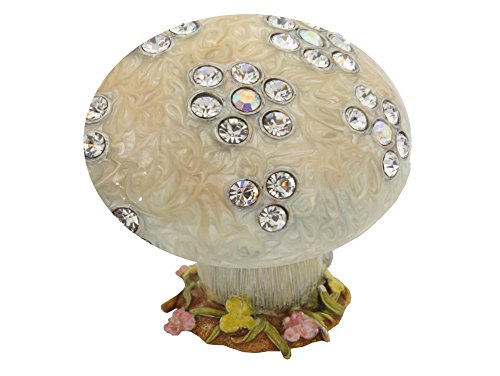 Cream White Enameled Mushroom Figurine Trinket Jewelry Box With Swarovski Crystals