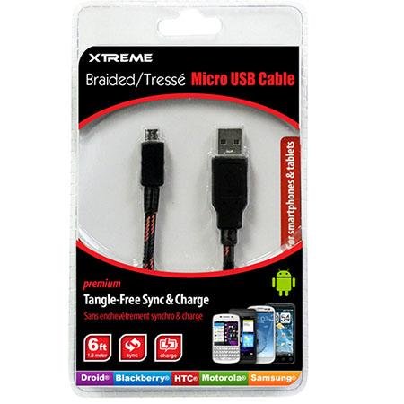 -. Title : Xtreme 6-Feet Tangle-Free Micro USB Sync and Charge Cable - Retail Packaging - Black/Gray