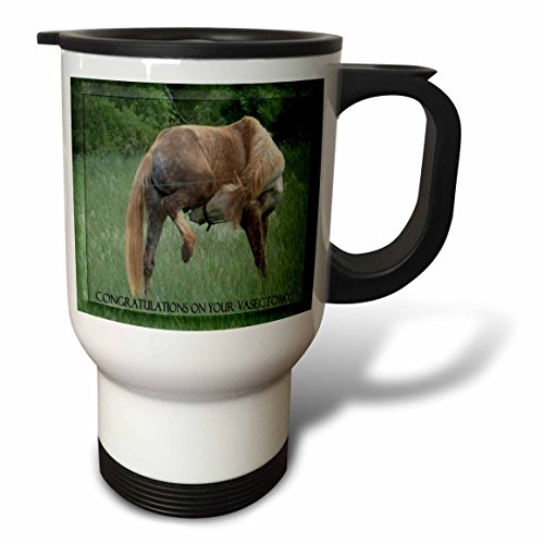 3dRose tm_14775_1 Funny Horse Green Background Congratulations on Vasectomy Travel Mug, 14-Ounce, Stainless Steel