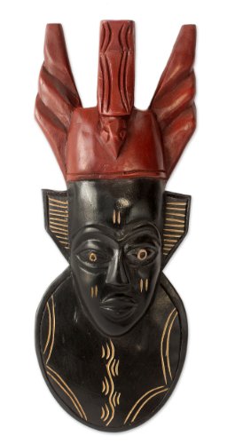 NOVICA Decorative Hand Carved Large Wood Mask, Black 'Do Not Rush Life'