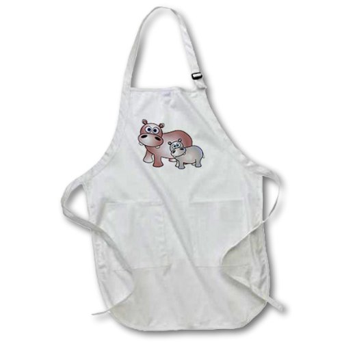 3dRose apr_6117_2 Cute Hippos Mom and Baby Medium Length Apron with Pouch Pockets, 22 by 24-Inch