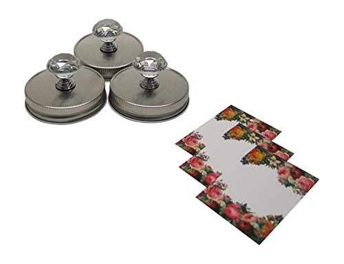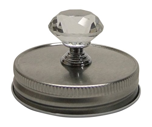Crystal Knob Canister Lids for Regular Mouth Canning Jars (Silver w/ Clear) - 3 Pack with Hang Tags