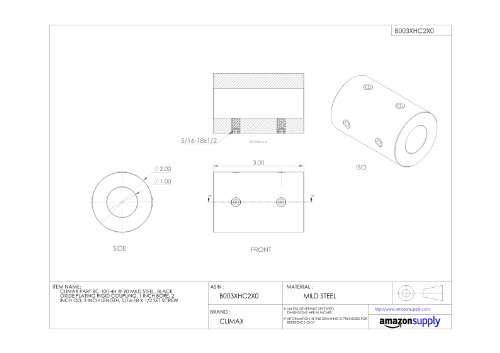 Climax Part RC-100-4H @ 90 Mild Steel, Black Oxide Plating Rigid Coupling, 1 inch bore, 2 inch OD, 3 inch length, 5/16-18 x 1/2 Set Screw
