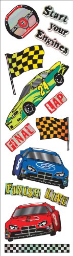 JILLSON ROBERTS SATIN MYLAR STICKERS, RACE CARS, BULK CONTINUOUS ROLL (BS7723)