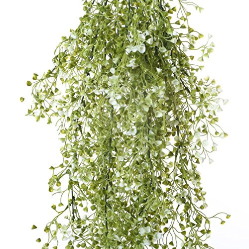 Miracliy 2.6FT Artificial Hanging Vine String Plant Garland Fake Flowers Greenery Plants for Home Garden Wall Decoration, Pack of 2 (White)
