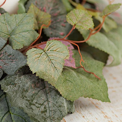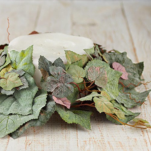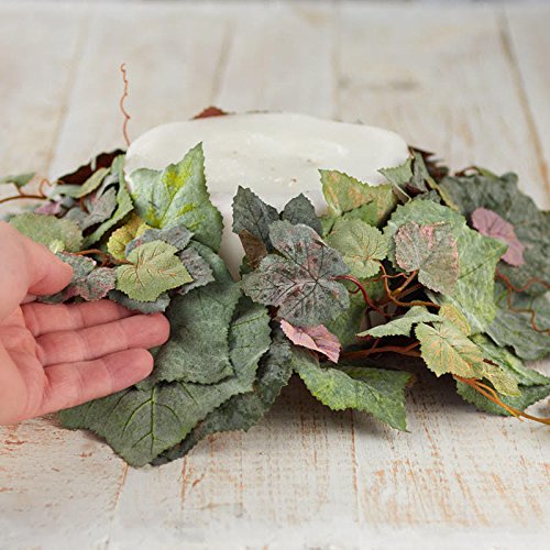 Factory Direct Craft Set of 2 Flocked Green Artificial Grape Leaf Candle Rings With Burgundy Accents for Displaying, Crafting and Decorating