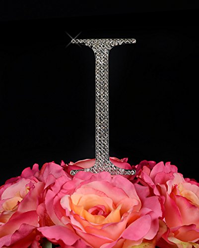 Unik Occasions Collection Crystal Rhinestone Wedding Cake Topper, Small, Letter I, Silver
