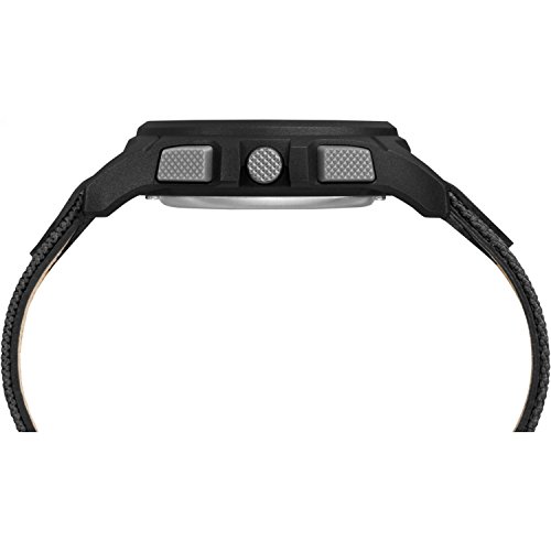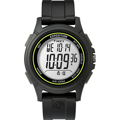 We know what it takes to make your favorite digital watch. Timex Men's Expedition CAT Black Digital watch with easy-to-set alarms and timers and featuring a comfortable mixed black nylon and leather strap with buckle closure . Water resistant up to 100 meters.