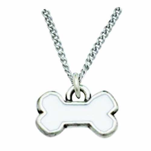-. Title : Rockin' Doggie Pewter Bone Necklace, White